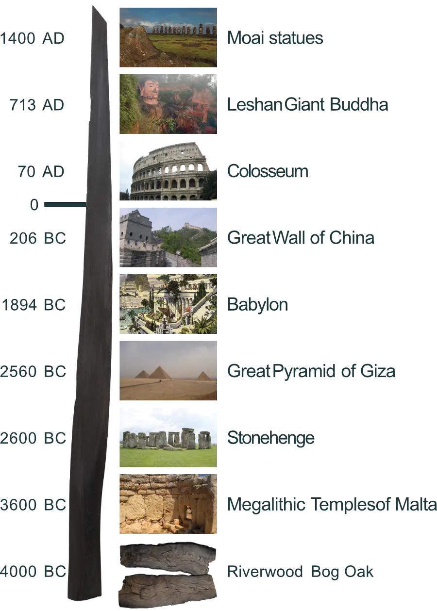 Prisé à travers l'histoire, le chêne des tourbières a longtemps été associé au pouvoir, au prestige et aux formes les plus élevées d'artisanat. En Europe médiévale et de la Renaissance, ce bois fossilisé était utilisé pour fabriquer des trônes, des meubles royaux et des artefacts pour la noblesse, symbolisant à la fois la force et l'intemporalité. Les rois et les empereurs appréciaient le chêne des tourbières non seulement pour sa beauté sombre et riche, mais aussi pour sa durabilité inégalée, en faisant un matériau idéal pour des pièces destinées à durer des générations. Sa densité et sa dureté extraordinaires, résultat de l'infusion de minéraux, en faisaient un symbole de résilience et d'héritage.