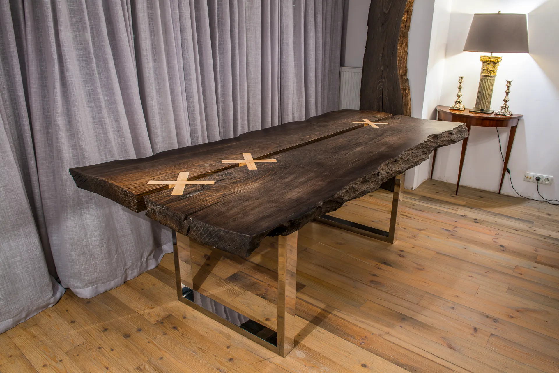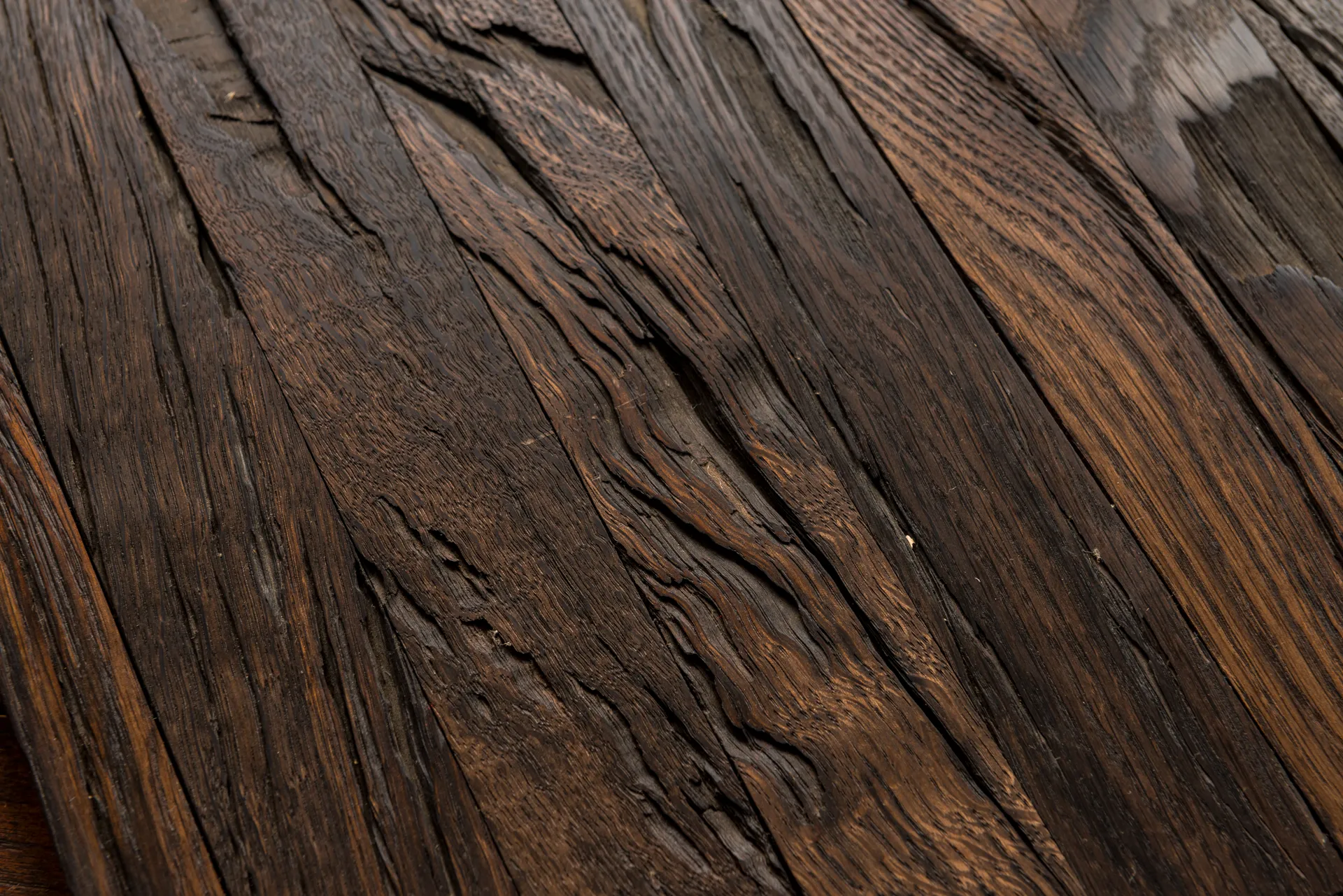Chaque pièce de chêne des tourbières raconte une histoire qui remonte aux forêts anciennes qui couvraient autrefois de vastes paysages. Les motifs de grain complexes, les textures riches et les teintes profondes témoignent de siècles de transformation naturelle. En tant que matériau qui relie les mondes organique et minéral, il incarne à la fois le passage du temps et la beauté durable de la nature.